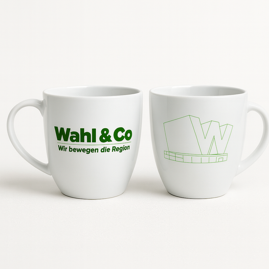Wahl & Co Kaffeetasse in Weiß mit Logo